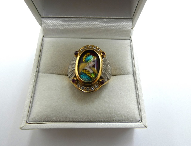梶光夫ジュエリー エマーユリング プラチナ&金 ルビー&ダイヤ買取