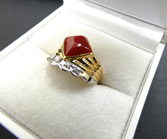 赤珊瑚&ダイヤモンドリング k18金プラチナコンビ宝石指輪買取